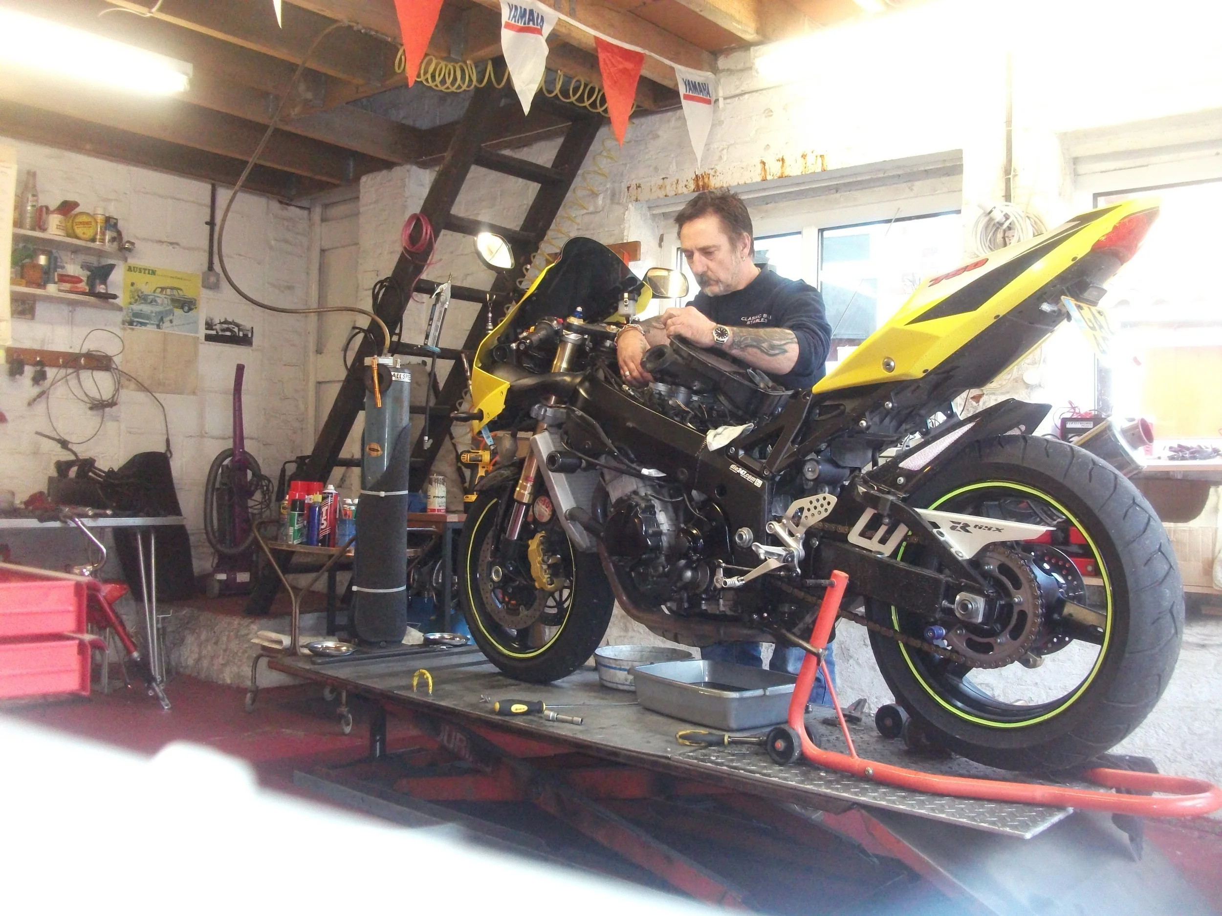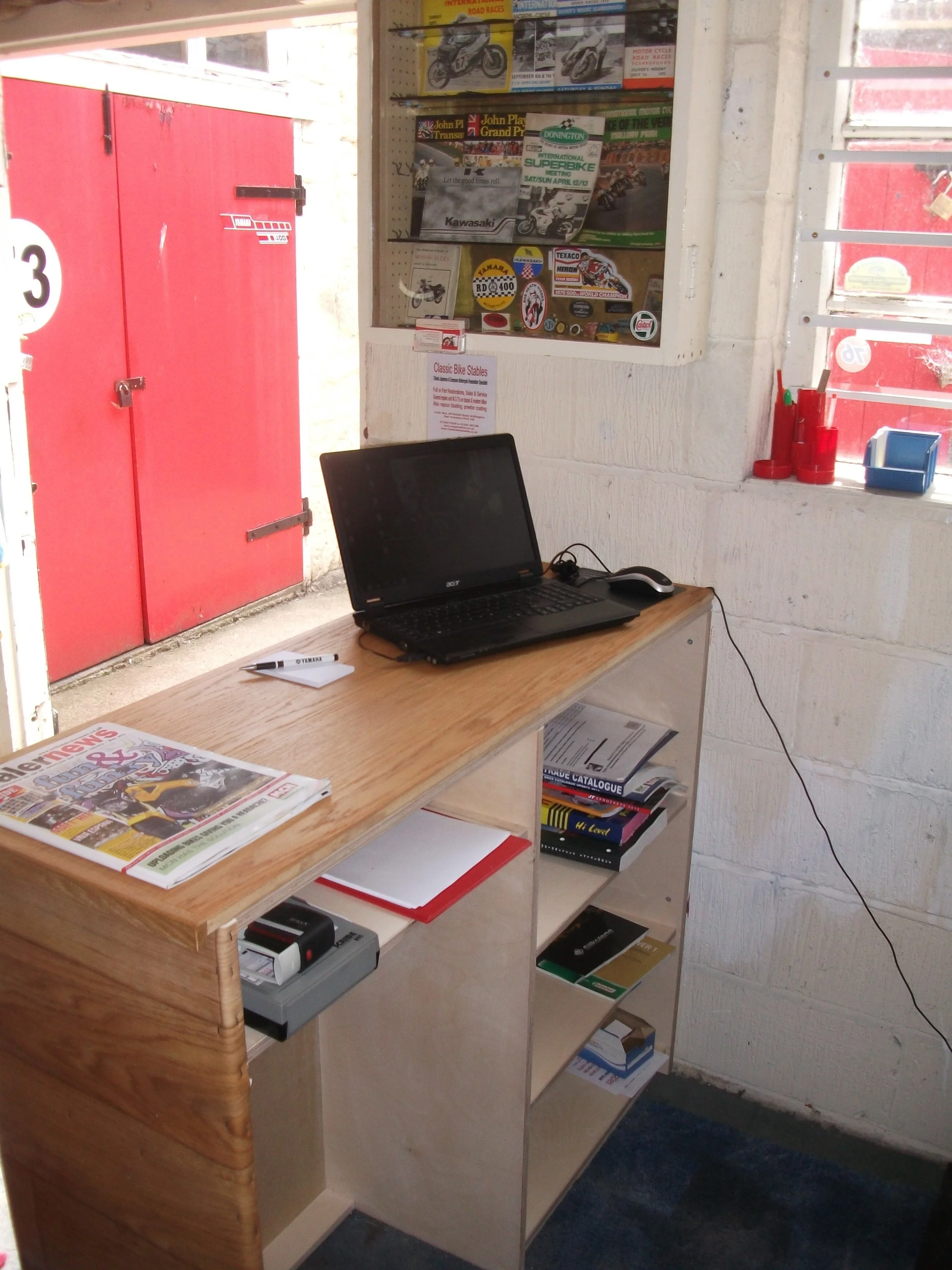 Sales/Shop area... .. Ok its not your average super shiny shop, its pretty much a home made counter in my smaller workshop, it doesn’t smell of polish and aftershave, its smells of motorcycles.