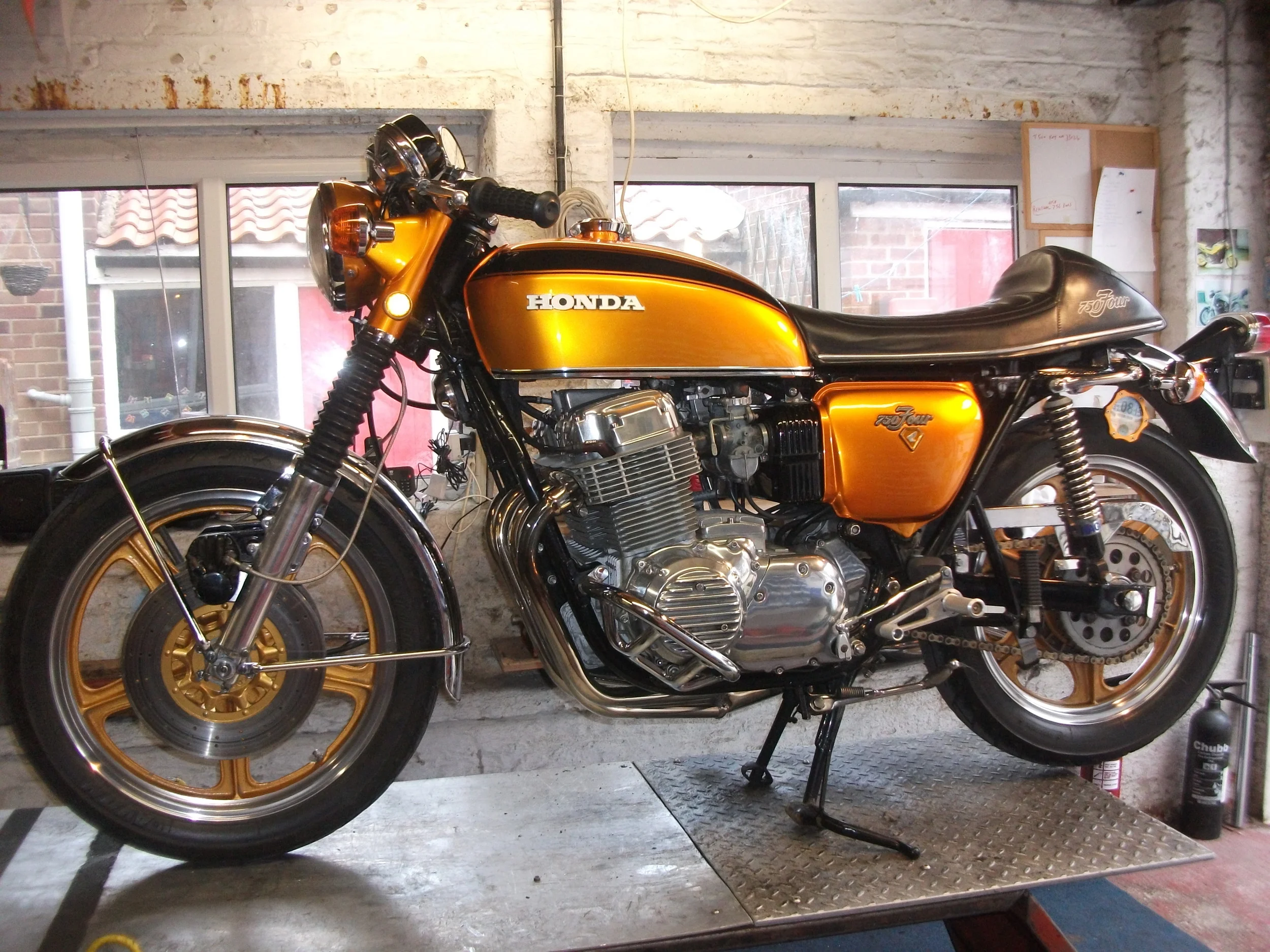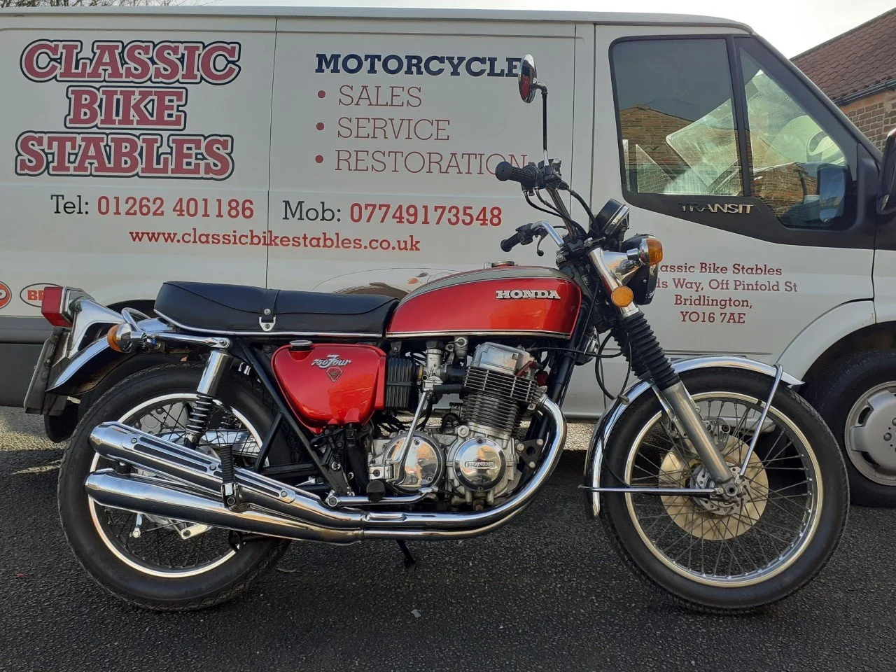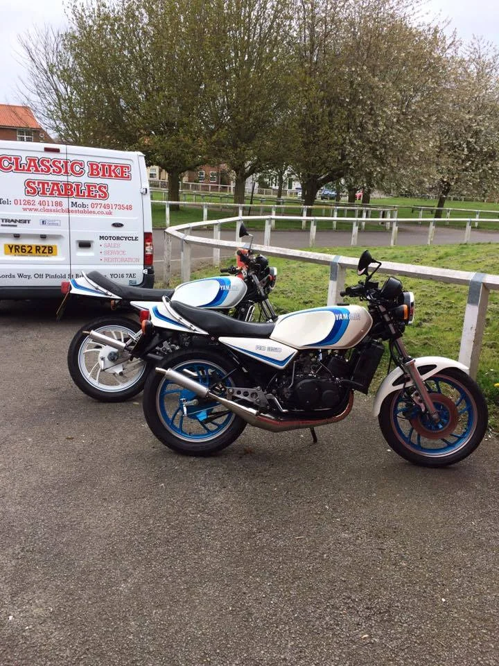 Two completed restorations ready to go home, 1977 Yamaha RD250 and 1975 Honda CB400 Super Sport. Both these bikes were bought brand new by different people.