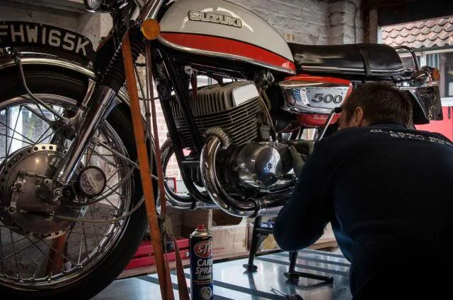 Part restoration work done by us on these 2 Suzuki 500 Twins.