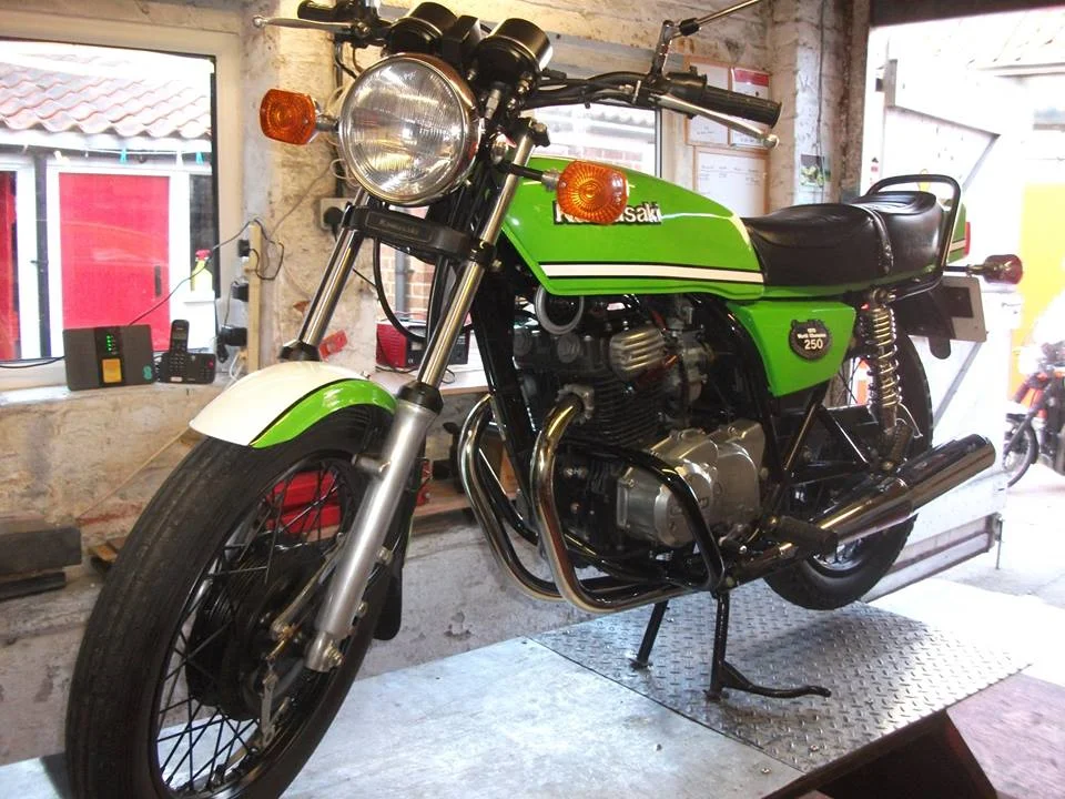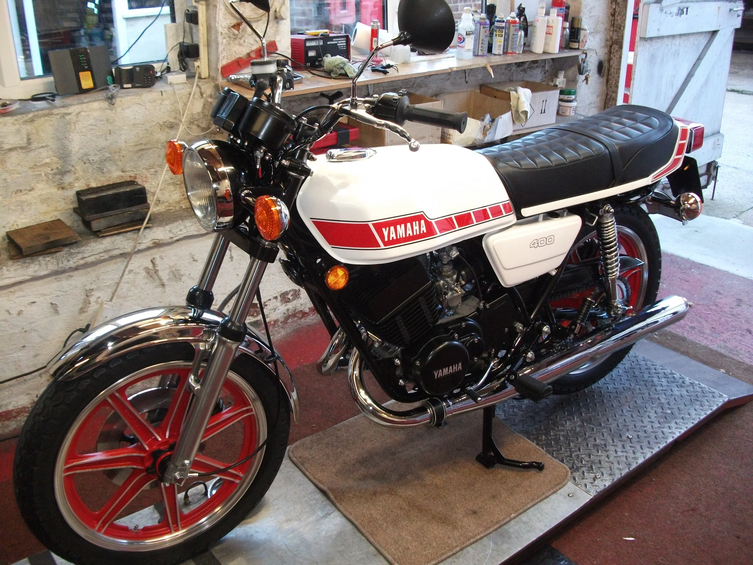 Total restoration of a 1977 Yamaha RD400D by us.